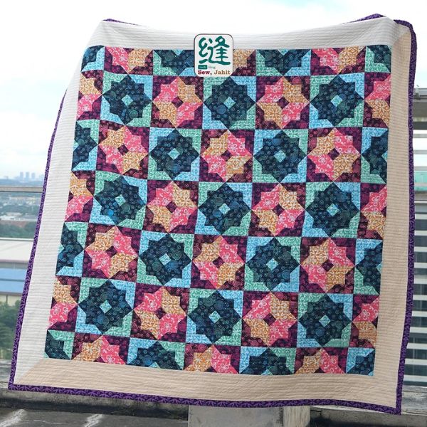 Ideal for celebrating Hari Raya Aidilfitri, the design showcases vibrant color contrasts and intricate craftsmanship. This quilt brings a sense of tradition and artistry to any space, whether used as a bedspread or decorative throw.